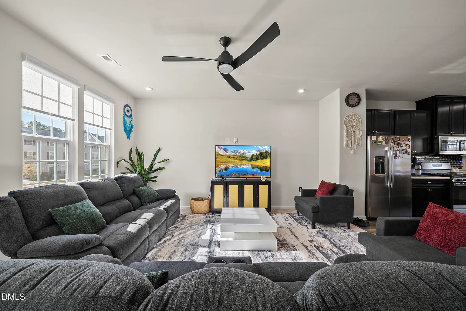 It features 3 bedrooms, 2.5 baths and a versatile bonus room with custom built-ins, offering the flexibility to create the perfect office, playroom or media space to fit your lifestyle. Step inside to a bright, open-concept layout where the kitchen, dining and living areas flow seamlessly together, ideal for entertaining guests or enjoying relaxed everyday living. Large windows bring in natural light and thoughtful finishes elevate each space.